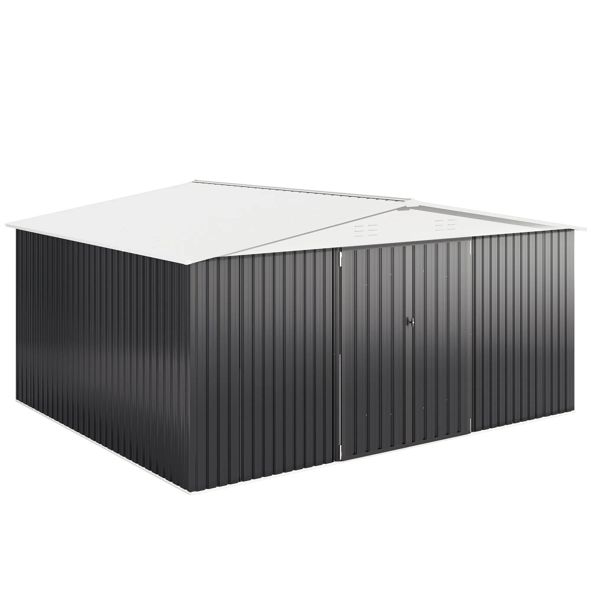 10x12/12x14FT Galvanized Steel Storage Shed Heavy Duty Lockable Hasp Door Black/White Roof Garden Tool Shed for Backyard Patio