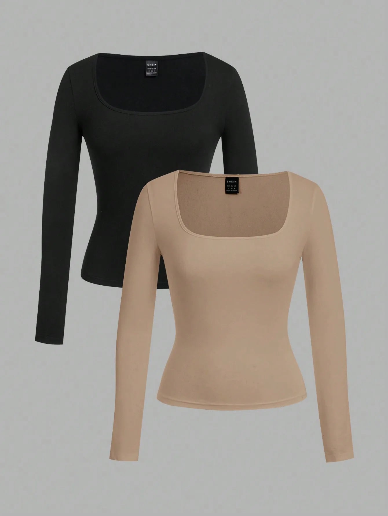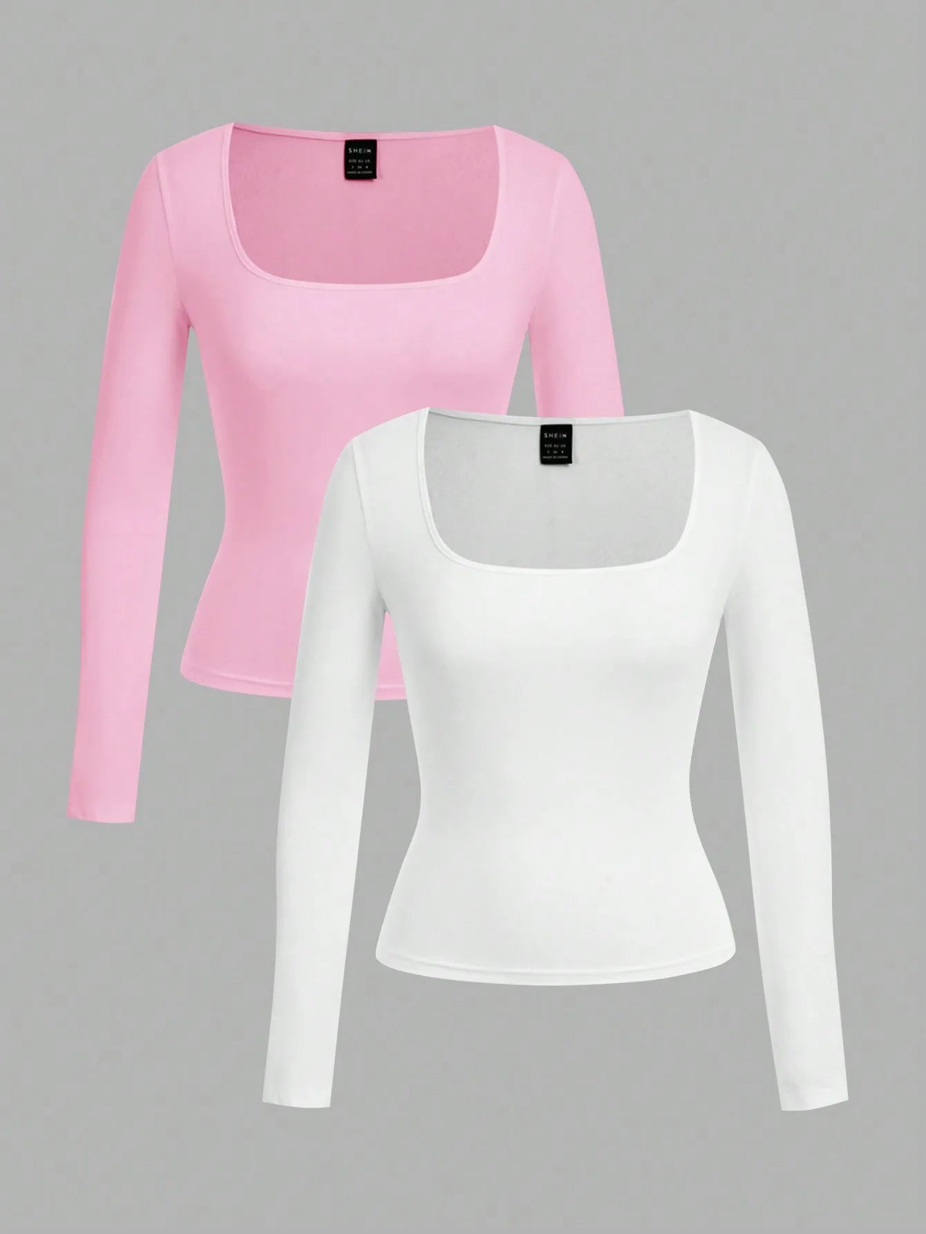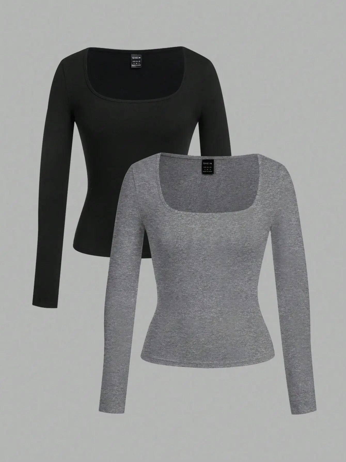 Elevate your everyday wardrobe with this two-pack of square-neck, long-sleeve fitted tees that flatter every silhouette.
